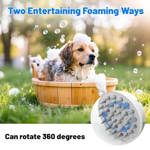Electric Rotating Massage Dog Shampoo Dispenser with Foam Brush | Rechargeable Pet Bath Tool for Short/Long Hair Grooming & Bathing