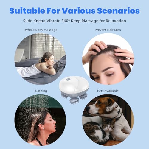 【Dual-Purpose Electric Scalp Massager】The electric scalp massager can be used by both humans and pets. The massager will slide, knead and vibrate 360° to promote blood circulation and relieve irritation. You and your ptes can enjoy a relaxing massage experience with it