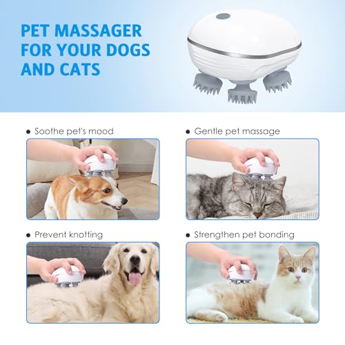 Upgraded Handheld Pet Massager for Dogs and Cats, Portable Pet Massager with 4 Rotating Massage Heads, Waterproof Electric for Relieving Tight Stiffness Muscles, Promote Bonding
