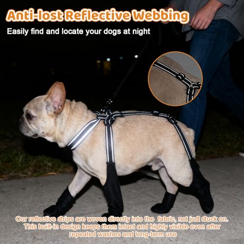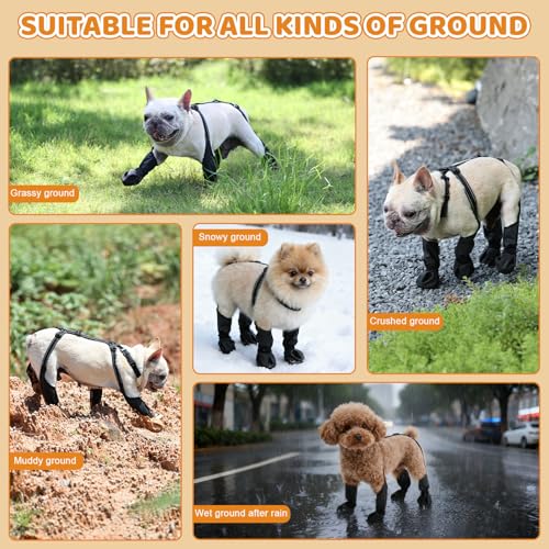 BECEMURU Suspender Dog Boots Leggings with Anti-Slip Sole for Small & Medium Dogs, Paw Protector, Perfect for Outdoor Walking, Hiking, Waterproof and Anti-Fall Dog Shoes with Adjustable Strap (S)