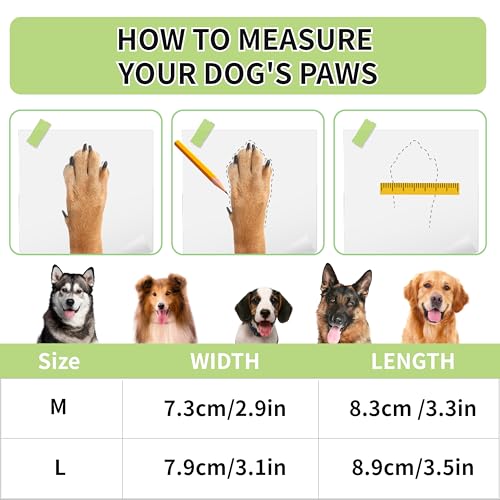 Easy to wear and comfortable: With a soft self-adhesive tape, it won’t strain the dog’s hair, and securely holds the paw cover in place for easy daily running, jumping, and walking. The soft interior ensures comfort.
