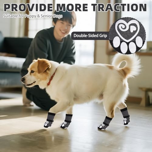 DOUBLE-SIDED GRIP:Unlike ordinary dog socks that slip on smooth floors, the double-grip design of our dog socks for injured paws features silicone dots on both sides for maximum traction. Perfect for senior dogs, post-surgery recovery, or active pups who love to run on hardwood/tile.