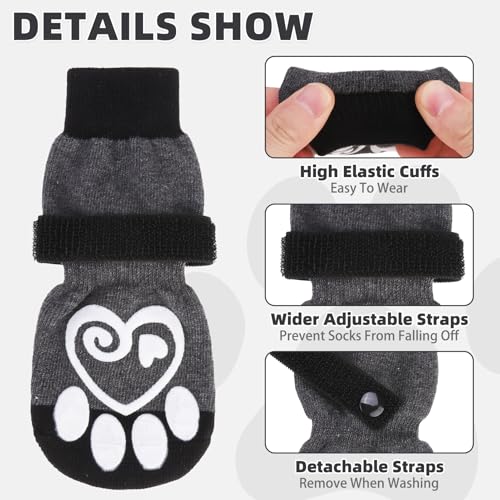 ADJUSTABLE STRAPS: the elastic straps of our non slip dog socks to prevent licking paws ensure a secure, custom fit for any breed,effectively preventing the socks from falling off. You can use the adjustable and removable strap to adjust the tightness of your dog’s socks to prevent your baby from dropping them when walking or running.