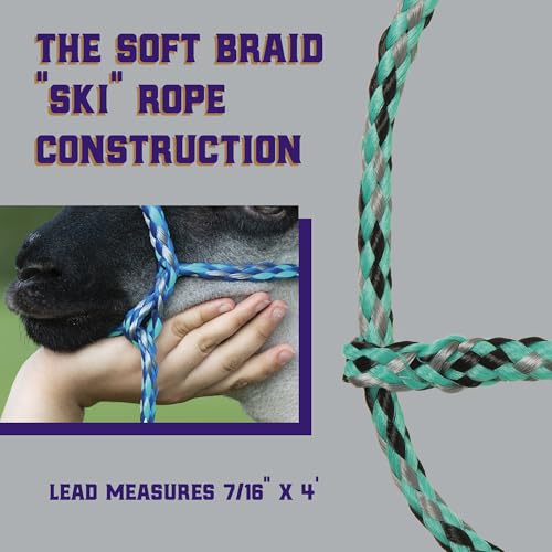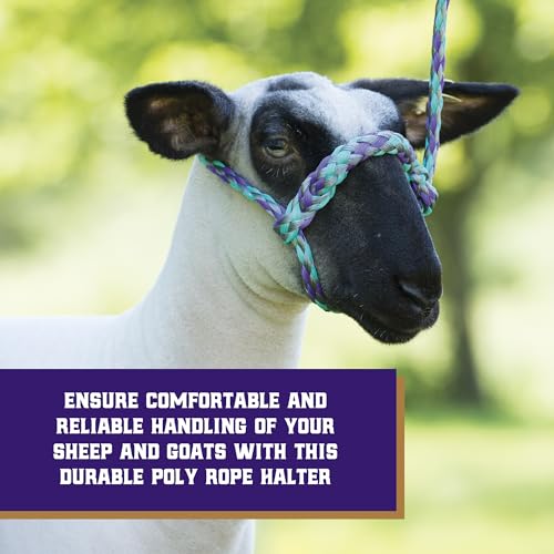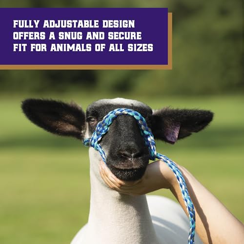 Livestock Poly Rope Sheep and Goat Halter: A must-have tool for any livestock handler, this rope halter is a reliable, durable, and comfortable solution for managing sheep and goats. This sheep and show goat halter is designed to provide superior performance and ease of use, making it an essential addition to your barn or livestock show equipment. Designed with soft braid ski rope, these show lamb supplies provide a gentle feeling and are ideal for teaching and leading an animal. Unlike traditional rough ropes, this sheep halter reinforces the nose, ensures minimal discomfort, and provides unmatched comfort for both animal and showman. These fully adjustable halters for show lambs, sheep, and goats ensure a perfect, snug fit for animals of all sizes. This versatility makes our rope halter a practical choice for various livestock handling needs, whether you’re training, showing, or simply managing your animals in the barn. These sheep and goat halters and leads provide ample length for guiding and controlling your animals with precision and ease. The high-quality material of this halter can stand up to the rigors of farm life and is designed for long-lasting use. An essential part of your sheep and goat show supplies, our halter is ideal for livestock handlers, farmers, and showmen alike.