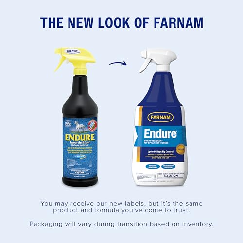 Farnam Endure Sweat-Resistant Fly Spray for Horses, Lasts Up to 14 Days, Protects Against Flies, Gnats, Mosquitoes, Ticks & Lice, 32 oz.