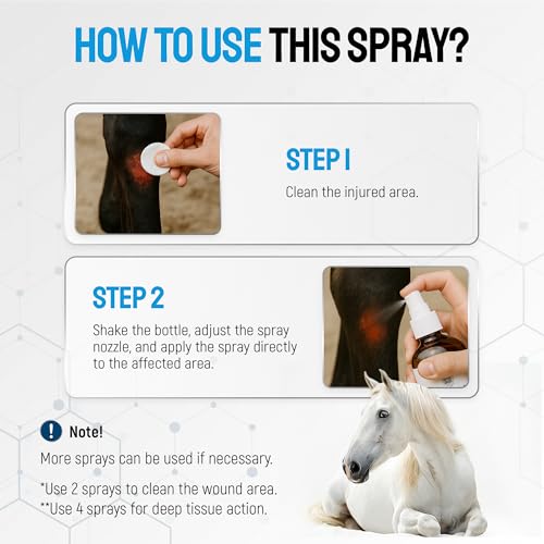 Horse Wound Care Spray with Silver – Wounds, Scratches, Cuts, Abrasions, Itching, Hot Spots, Skin Irritation – First Aid Solution and Breeds – 4 Oz