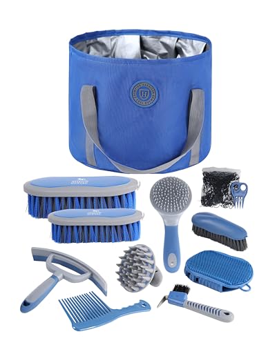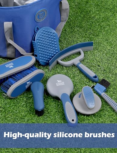 Harrison Howard Horse Grooming Kit 9-Piece Equine Care Series Horse Brush Sets with Organizer Tote Bag Deep Blue