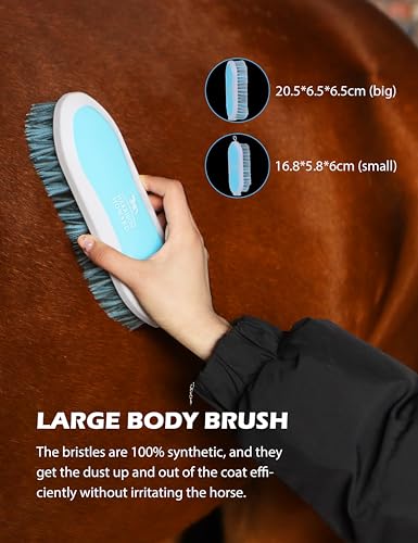 Made of Durable Materials: Designed for long-lasting use, these horse brushes for grooming effectively remove dirt and mud from the horse’s coat. They also help stimulate blood circulation, promoting the production of natural oils for a shiny and healthy coat.