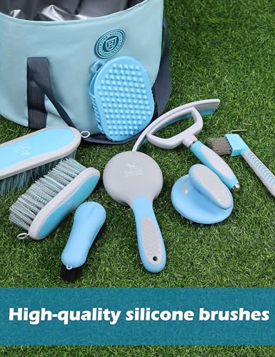 Harrison Howard Horse Grooming Kit 9-Piece Equine Care Series Horse Brush Sets with Organizer Tote Bag Soft Blue