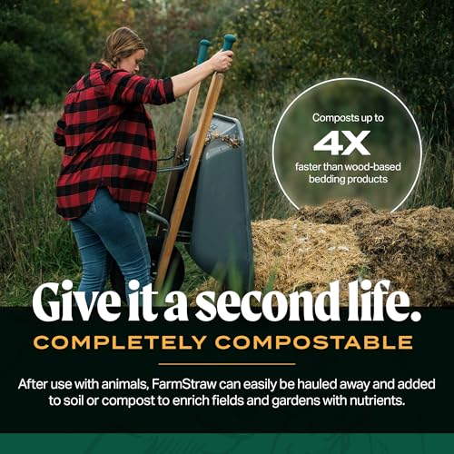 FarmStraw Coarse Cut, 3 cu ft (25 lb) Expands to 10+ cu ft – Wheat Straw Bedding for Homesteads, Hobby Farms & Small Pets – Dust-Free, Absorbent, Fluffy, Insulating, Sustainably Sourced