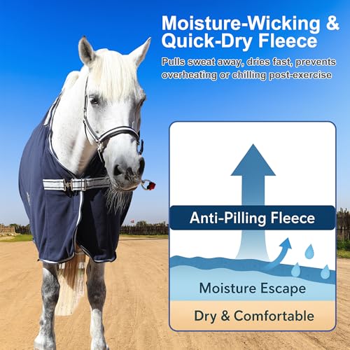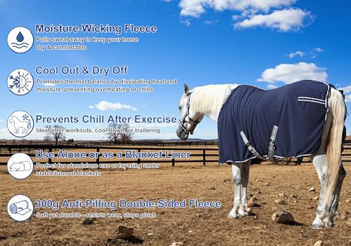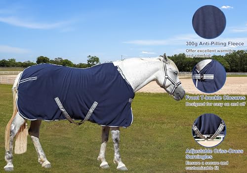 Horse Fleece Cooler, Blanket Liner – 300g Anti-Pilling Fleece, Moisture-Wicking, Cooling & Drying for Post-Workout, Bath & Travel, Prevent Overheating & Chilling Navy 78