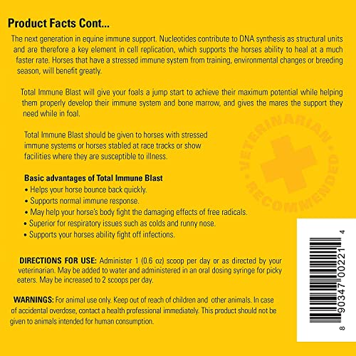 180-DAY SUPPLY: Give your horse with a daily dose of Total Immune Blast powder supplement. Just one 0.6 oz scoop per day mix the powder with water, or as directed by your veterinarian, is all it takes