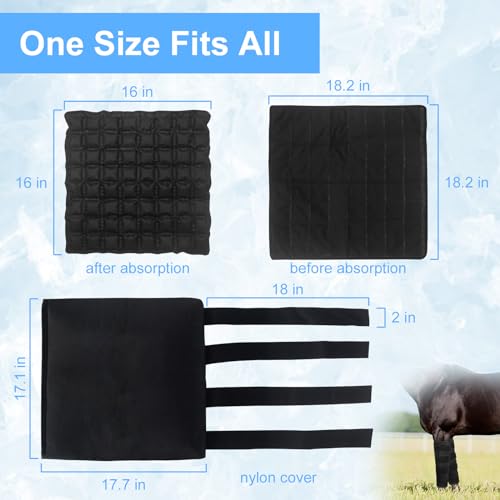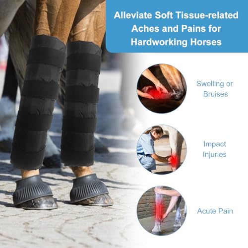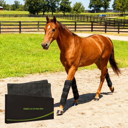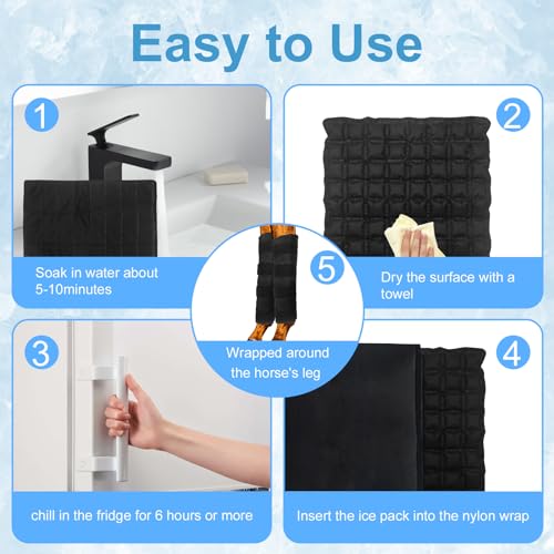 EASY TO USE – Soak the ice pack in water to allow it to fully absorb the water, then dry the surface with a towel and chill in the fridge for 6-10 hours, then place the gel ice pack in the cloth wrap and secure around the horse’s leg. Ice wraps for horses used for stocking up, impact/acute injuries causing joint swelling or bruising, swollen hocks, recovery from knee replacements, and as an alternative to cold hosing.