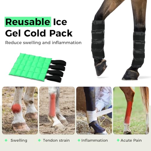 Reusable Gel Horse Ice Boots (Set of 4) – Adjustable Leg Wraps for Cooling Relief on Hocks, Knees & Ankles, Durability & Cooling in Active Horses