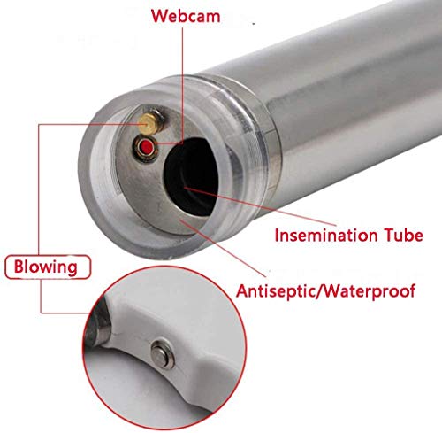 Product description Features: 1.Full rotation of display 2.Heating of probe 3.Vibration of probe 4.Video function 5.Gas channel function 6.Endoscope can be used to check all inflammation in vagina and uterus 7.The camera has a cold light source ; one million PixelAdvantages (1)The spherical head vas deferens design combines the physiological structure of the cow. According to the experiment, when the sphere of the vas deferens reaches a certain size, it is not obstructed by the fold of the cervix. (2)During the insemination process, the insemination process can be easily viewed at any angle and position. (3)Enable the air channel at any time to flush the mucus that blocks the camera. (4)During insemination, if the cow produces cramping, the vibration massage function is turned on, so that the cow can complete the insemination in a comfortable environment (optional function).Package List: 1x Visual Insemination Gun Set English manual, please do not buy if you do not understand English